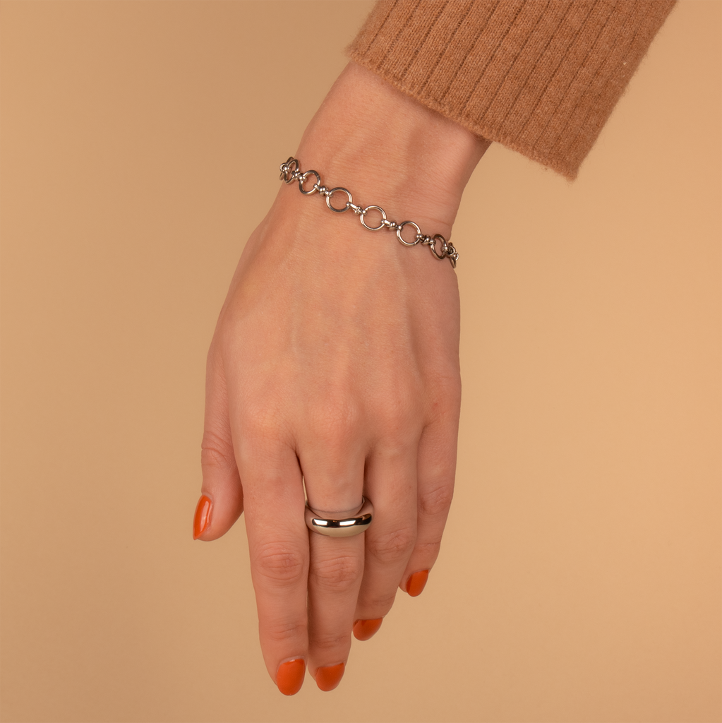 Osez le charme de ce bracelet enchaîné d’anneaux argentés. Un bijou intemporel au look vintage, c'est le passe-partout qu'il vous faut!
