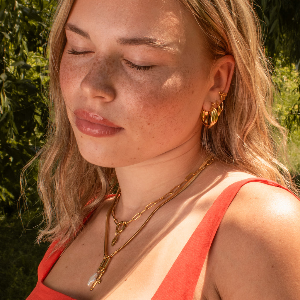 The process we use to coat our jewelry with gold is the most modern and is the one that forms the strongest bond between the gold layer and the base material of the jewelry. Our jewels therefore remain shiny for much longer! We also only use stainless steel and PVD gold as the base material for our jewelry making it tarnish resistant, water resistant and safe for skin.