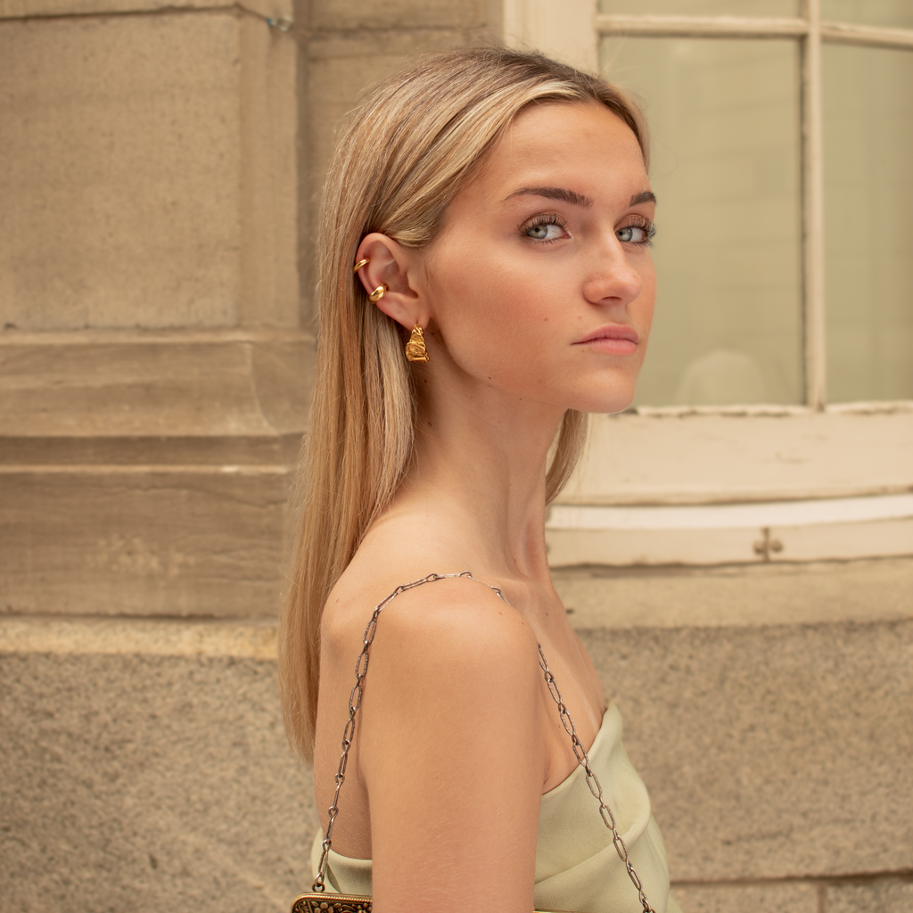 Looking for a statement piece with a unique design? Look no further, our Sarra hoops merge the organic and the bold to complete all your looks.