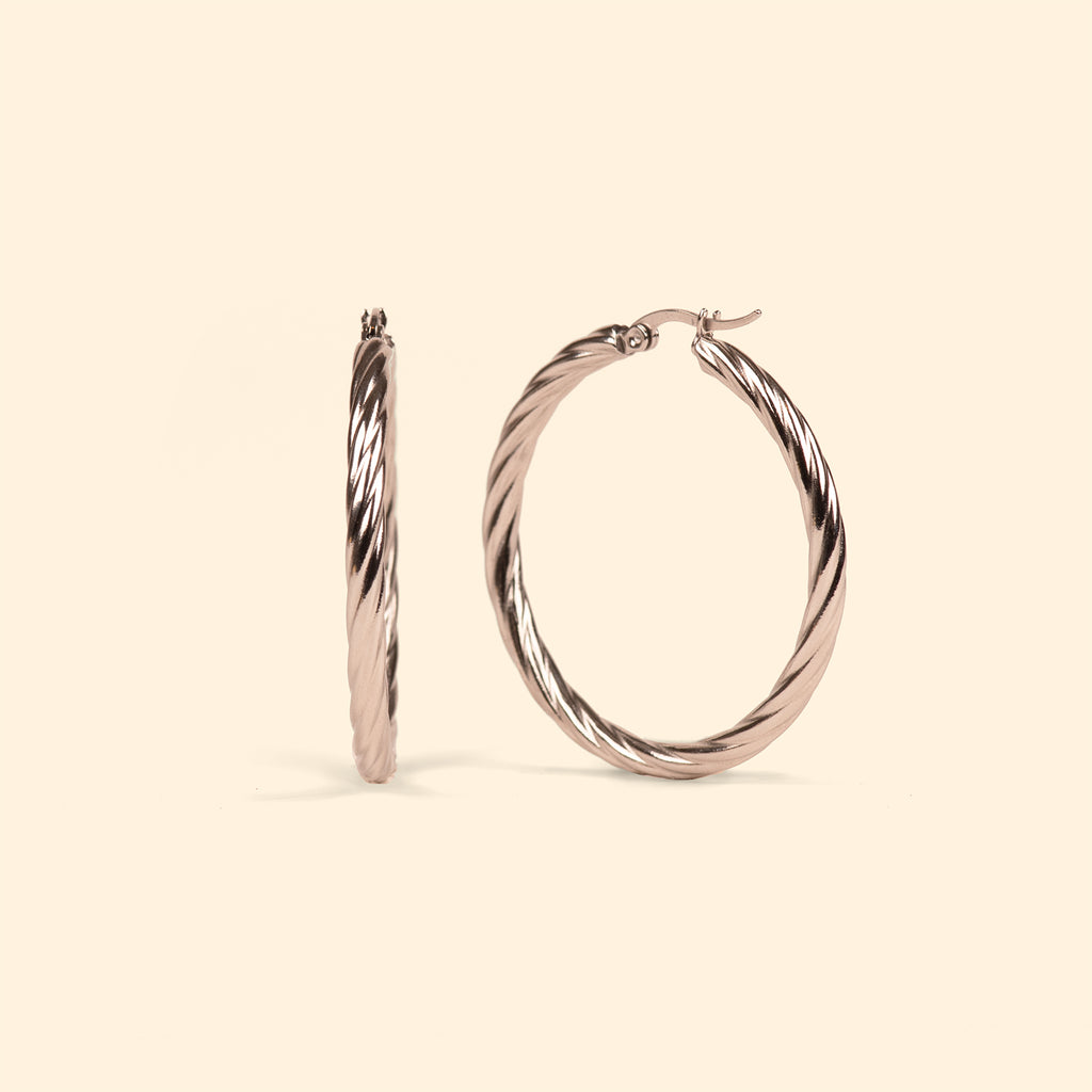 Explore the brilliance of our Selena Bold earrings, which stand out for their larger size compared to our regular Selena model. Ideal for adding a touch of boldness to your everyday style. Made of high-quality stainless steel, these earrings promise flawless beauty, even when worn in the shower or in the pool. Their twisted design offers a sophisticated look that is sure to turn heads, adding a striking dimension to your outfit.