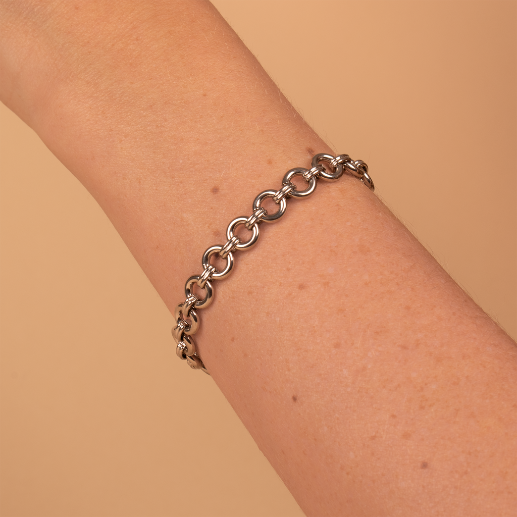 Osez le charme de ce bracelet enchaîné d’anneaux argentés. Un bijou intemporel au look vintage, c'est le passe-partout qu'il vous faut!